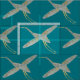 Elegant teal väv med upprepat mönster av vattenfärgade kranfåglar i tonerna grått och senapsbaserad gult, inspirerad av traditionell japansk konst eller Chinoiserie stil. Perfekt för att få en färgstark beröring till din hemdekanter.