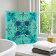 En konstnärlig platta för badrum eller köksbord med en fantastisk geometrisk design i färg för grönt och mynta.