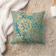 Ett fint dekorativ kudde med en vacker och elegant teal grönt och guld blommigt mandala mönster.
