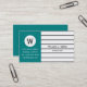 Elegant Teal Grönt White Black Rand Monogramme Visitkort