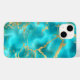 Elegant- och snyggt-turkos/teal- och guld aka/blue marble/gemstone iPhone 14 fodral