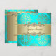Vacker turkosblå och guld damask födelsedagsinbjudan. Lägg till dina detaljer på framsidan och baksidan av denna eleganta turkosblå och guld inbjudan genom att helt enkelt välja "Anpassa!" knappen för att börja lägga till dina evenemangsuppgifter, typsnitt, teckenstorlek och färg samt formulering. Observera att alla inbjudningsdesign du hittar på Zazzle är tryckta grafik på vanligt papper utan faktiska ädelstenar, band, upphöjda, präglade eller tillagda delar.