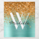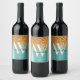Elegant Teal Guld Monogram Glitter Girly Namn Vinflaska Etikett