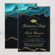 Elegant Teal och Guld Marble Agate Examen Inbjudningar