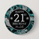 Elegant Teal och Silver Glitter Agate Birthday Knapp