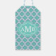 Elegant Teal Quatrefoil Mönster Anpassningsbar Mon Presentetikett