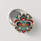 A richly detailed symmetrical floral motif featuring teal, deep red, and golden accents, creating a bold and sophisticated decorative pattern ideal for buttons, earrings, cufflinks and shirt studs, keychains, magnets, coasters ceramic tiles and elegant home décor.