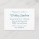 Bjud in dina närmaste vänner och familj att dela i en intim firande med detta vackert designade infogningskort för bröllopsinbjudan. Perfekt för evenemang utöver mottagningen – som en bröllopsfrukost, familjelunch eller middag, eller tempelsegling – tillför detta lilla kort en underbar touch till din inbjudan. Designat med återhållen elegans har kortet teal text på en krispig vit bakgrund för en ren, modern estetik; ett sofistikerat script-teckensnitt för evenemangets namn eller titel; ett kompletterande sans-serif-teckensnitt för alla ytterligare detaljer; och en tom baksida för anteckningar eller ytterligare anpassning. Varje textrad är fullt anpassningsbar, vilket gör detta infogningskort till ett flexibelt val för alla ytterligare bröllopsevenemang