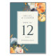 Elegant Teal Terrakotta Marinblå Boho Blommig Bordsnummer