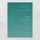 This wedding program features a minimalist and elegant design with a vertical layout, centered alignment, and ample negative space. The background showcases a gradient of teal hues transitioning from dark to light, creating a serene atmosphere. The typography includes a mix of cursive for the welcoming greeting, bold serif for the names, and clean sans-serif for event details, ensuring readability and sophistication. Perfect for couples seeking a modern and uncluttered aesthetic, this design captures the formal yet inviting mood of a significant life celebration.