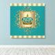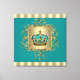 Vacker tealblå och guld juvel kronprins canvas väggkonst tryck. Storleken som visas är 24x24. Du kan välja bakgrundsfärg efter eget val.