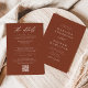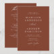 Elegant, allt-i-ett-bröllopsinbjudningar med ceremonin i namn och bröllop på framsidan i vitt brev med terracotta-brun bakgrund. Ett modernt kalligrafiskript kompletterar den här chicens inbjudan till ett bröllop. Anpassa baksidan av kalligrafinbjudningarna till bröllopet med bröllop-uppgifter som mottagningsinformation, hotellrum, OSA och bröllop webbplats. Lägg till den önskade webbplatslänken för bröllop till den angivna QR-kodmallen så att dina gäster enkelt kan OSA online och visa ytterligare bröllop-information. Den här inbjudan till ett QR-kodbröllop är perfekt för både formell och avslappnad bröllop under vilken säsong som helst.