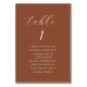 bordsnummer för anpassningsbar-designade fall-bröllop-sätesdiagram med modern elegant vit kalligrafi på terracotta färg bakgrund.