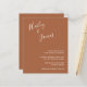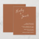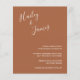Modern inbjudan till budgetbröllop som innehåller en enkel design med namn i ett handskript för elegant högst upp till lämnat och din händelseinformation i högernas anpassning vid högerna grund. All inslag är i teracotta/bränd orange/rost och kan ändras i designredigeringsverktyget i verktyg. Den chic handskriften ger en romantisk beröring till denna minimalistiska utformning.