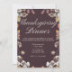 Värd en varm och minnesvärd Thanksgiving som samlas med elegantens hösttematiska middagsinbjudan. Med en brun bakgrund med rik och delikata hörn och blommigt, fångar den här designen fallets mysiga, rustiska charm. Det blomstrande manuset "Thanksgiving Middag" är vackert, skapar det perfektens inbjudan till en fest fylld med bra mat och omhuldad skratt. Den här inbjudan är perfekt för familjemöten eller ett mer formellt firande, och den ger dig en nyktert beröring till din Thanksgiving.