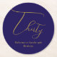 Add a luxe finishing touch to your milestone celebration with these elegant 30th birthday paper coasters, featuring a bold navy blue background and a graceful faux gold foil “Thirty” script. These round disposable coasters are both functional and decorative — perfect for serving drinks in style at your 30th birthday party.