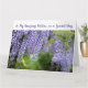 En elegant stor gratulationskort med texten "Till min fantastiska mamma, på en speciell dag" på framsidan och ett vackert, slående foto av ljuslila wisteria blommor. Till mors dag eller hennes födelsedag, eller för vilken annan anledning som helst. För en mamma med nästintill oändlig tålamod, vänlighet och förståelse, och med en oändlig tillgång på moders kärlek. Du kan anpassa alla textfält i detta kort, till exempel framsidan så att den lyder "Till min perfekta mamma, på hennes födelsedag" eller de listade egenskaperna för att hänvisa till något annat; eller så kan du anpassa den avslutande raden. Om du väljer att behålla kortet som det är, se till att du byter namnet "Emily" till ditt eget.