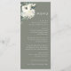This simple elegant menu features watercolor flowers with lush greenery on a chic olive green background.