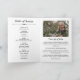 Elegantens vita begravningsprogram med foton, elegant typsnitt och smakfulla detaljer. Vita hopfogade begravningsprogram med svart text och elegant personlig med foton, bild, ordning och bekräftelse.