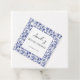 Eleganta blå blommiga bröllopsduschfavoritsetiketter för en modern toile-inspirerad fest ger din fest en charmig stämning