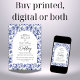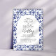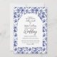 Klassiskt blått och vitt blommigt: roustisk toile de jouy temed bröllopsinbjudan