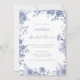 Elegant Toile Fransk Blå Blommig Bröllopsfest Inbjudningar
