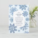Fira årets underbara tid med vår fantastiska, blå inbjudan till snöflingan från julfesten. Den här inbjudan visar en andningsfull visning av marint och pastellblått toile snöflingor, som omger ett skarpt, vitt notched ram mot en picturesque vinterbakgrund. Skapa en personlig genom att anpassa det här kortet med din evenemangsinformation, skapar det idealiskt för alla typer av sammankomster - från öppna hus-middagar i party och julmiddagar till festliga soier, företagsevenemang och helgdag cocktail-party. Låt denna inbjudan vara perfekten för att ange tonen för ert firande.