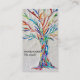 Detta unika affärskort är dekorerat med en utskrift av ett mosaiskt träd som består av ett mycket litet delart glas av lätt färgad. Den passar alla i hälsa. Originalmosaik © Michele Davies.