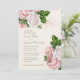 Elegant modern botanisk/trädgårdsinspirerad bröllopsinbjudan i rosa vattenfärg med rosor och målade gröna blad på krämfärgad och rosa bakgrund. Perfekt för bröllop när som helst under året, men speciellt under våren och sommaren. Kontakta oss för hjälp med anpassning eller matchande produkter.