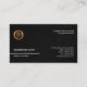 Kortet har en svart bakgrund med en underliggande abstrakt-raddesign. Kortet öppnas med en slogan-tagg överst på kortet. Det här är ett alternativ som du kan använda för använda för att anpassa designen. Under kortets fot finns alla dina kontaktuppgifter. Höger mot lämnat är ditt namn och din befattning. En frivillig faux-logotyp i guld ligger precis norr om detta.