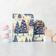 Evergreen and deciduous trees in the winter, with snow or berries on the branches, make this retro-looking wrapping paper perfect for your holiday gifts. Resembles designs from the 1950s and 60s, with a modern update.