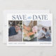 Fånga er kärlekshistoria med stil och sofistikation i vår Eleganta Tre-Foto Bröllops Spara Datum-kort. Denna tidlösa design visar upp tre av era favoritögonblick tillsammans på ett vackert sätt, och ger era nära och kära en glimt av glädjen i er resa hittills. Med en klassisk layout och förfinad typografi sätter detta Spara Datum-kort en graciös ton för er stora dag, och blandar hjärtlig sentimentalitet med en touch av elegans. Perfekt för par som vill ha en meningsfull, fotoframåtriktad design som familj och vänner kommer att värdesätta som en förhandsvisning av den kommande festen.
