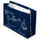 Elegant Trendig Abstrakt Träd Blue God jul Large Gift Bag. Den här presentpåsen i eleganten har en blå bakgrund med God jul skriven i söt tillsammans med namn i familjen. Anpassa den genom att ändra namn.
