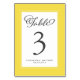 Elegant trendig gul och vit bröllopsmottagning bordsnummer