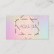 Elegant guldram och konfetti på den holografiska bakgrunden. Idealisk presentkort för skönhetssalonger, spa, kosmetologer, esteter, dansstudior, butiker, designers, frisörer och modeskapare eller andra imagekänsliga eller detaljhandlare.