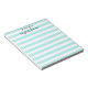 Anpassningsbar, modernt, chic, snyggt, trendig aqua blue och white rand mönster, vackert skript för elegant / typografi, personlig kindergarten school-lärares hemmakontor, 40 lättförstörda sidor anteckningsblock. Skriv bara in ditt namn/ditt företag/ditt företag namn för att anpassa dig. Du kan också ändra rubriken överst från "från skrivbordet" till "En anteckning från" eller "Att göra lista" eller "Sak att göra" eller "Livsmedel lista", eller "Köp lista", eller "Målplanering" eller någon annan rubrik som du väljer. Perfekt för både hemmet och användan, privatlivet och kontoret att skriva anteckningar, brådskande anteckningar, listor, att göra-lista, livsmedel, shopping, måltidsplanering, påminnelse eller en fin anteckning till speciell person.