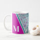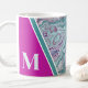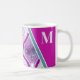 Girly Elegant Teal Fuchsia Agate Monogram Initial Coffee Mugg. Kristallerna och geoderna fortsätter att vara en favorittrend! Den här utskriften har en skarp bild av en pulserande turkos och geodesten av lila (magenta), komplett med små kristaller. Lägg till ditt första för att göra det till ditt eget.