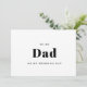 Ett enkelt och minimalistiskt presentkort för att skriva ett personligt och hjärtligt meddelande till dina föräldrar på din bröllopsdag. Helt anpassningsbart med dina favoritfärger (text och bakgrund). Du kan lägga till ett meddelande på baksidan, eller lämna det tomt om du föredrar att skriva din hälsning för hand senare.
