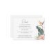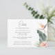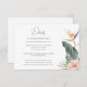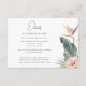 Kortet för bröllopsinformation för eleganten innehåller ett fantastiskt vattenfärgsmotiv för tropiska botaniska ämnen som handflatan löv, hibiscus och paradisfåglar. Typografin är klassisk men modern. Det här är perfektens utformning för ett tropiskt strandtema eller ett målbröllop.