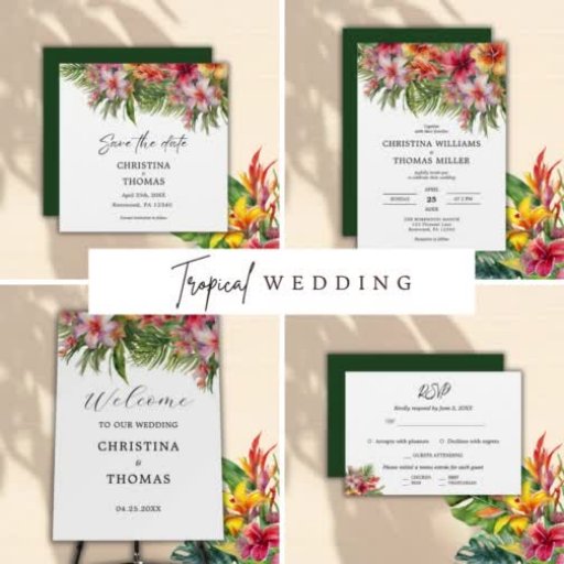 Fira din speciella dag i tropisk elegans med vårt fantastiska vattenfärgat bröllop OSA av tropiska blommor. Det här vackert utformade kortet har vibrerande och exotiska tropiska blommor som delikatärmålas i mjuka pastellnyanser och skapar en romantisk och vismisk atmosfär för dina gäster. Använda verktygen Anpassa och utforma om du vill ändra text, typsnitt och färg.