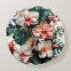 Add a touch of botanical luxury to your home with this exquisite round throw pillow. Featuring a vibrant tropical hibiscus and orchid design with shimmering gold leaf accents. Perfectly customizable with your own initial. This unique circular pillow is a sophisticated gift for weddings, housewarmings, or an elegant update for your living room.