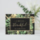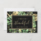 Det här moderna tropiska tacket som du har på kortet har grönt och guld handflatan, filodendron och fern löv i svart bakgrund. En elegant guld ram belyser texten från guld. Guld stänk accentuerar denna exotiska botaniska design och ger inbjudan till lite sofistikerat stollig. På baksidan kan ett anpassningsbar-meddelande skrivas ut på varje kort eller så kan det lämnas tomt för att tillåta ett handskrivet meddelande från briden och trimmen.