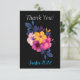 Tack gästerna för att de delar med sig av denna pulserande och elegant-design. Ställ in mot mörkens bakgrund för att visa blommigtens livskraft. Alla typsnitt och formuleringar kan anpassas. Du kan också anpassa färg för bakgrund och teckensnitt. Kortets baksida lämnas tomt för handskrivna känslor.