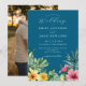 Elegant Tropisk Blommig Foto Bröllop Havsblå Inbjudningar