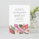 Fira din kärlek och fly till paradiset med denna Eleganta Tropiska Bröllopsinbjudan. Perfekt för strand- och kustbröllop, är denna bröllopsinbjudan fylld med eleganta och moderna detaljer, romantiska blommor och livfulla färger. Den fantastiska akvarellkonsten inkluderar gröna palm- och monstera blad, ljusa magenta- och fuchsiaorkidéer och rosa hibiskusblommor. Baksidan har ett matchande mönster. Hitta matchande artiklar i Colorful Tropical Floral Wedding Collection.