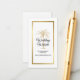 Ge dina gäster all information om ditt bröllop på din hemsida med detta eleganta inklusionskort med modernt skrivsätt, svart text inklusive ett konstnärligt gyllene palmträd, metalliskt guldram och vit kant på framsidan av kortet. En matchande vit bakgrund finns på baksidan.