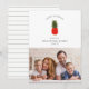 Det här eleganta vykortet har en färgrik tropisk ananas i julrött, grönt och falskt guld, med en plats för att lägga till ditt familjefoto. Texten säger "God Jul" men du kan ändra den till vad du vill. Ett bra sätt att skicka varma hälsningar till jul!