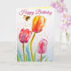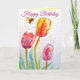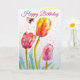 Elegant Tulip and Bee Watercolour Birthday Card Kort