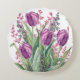 Elegant Tulip Flowers Pattern,Purple Stripes Rund Kudde