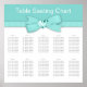 Elegant turblå bröllopsbord platskarta mall. Du kan flytta design elementen efter behov och välja typsnitt, storlek och färg efter eget val.
